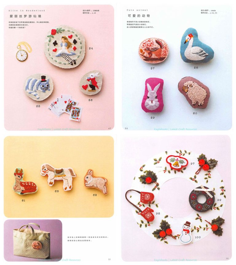 This embroidery book offers 100 cute embroidery patterns. Including hand drawn flowers, animals, girl, and other hand drawn patterns. Plus basic stitches tutorial, How-to transfer your creation to practical use, such as brooches, Bag, hand towel etc.