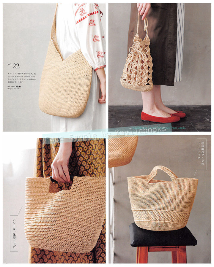 • 30 Unique Designs: Includes bags and pouches with natural-colored yarns.