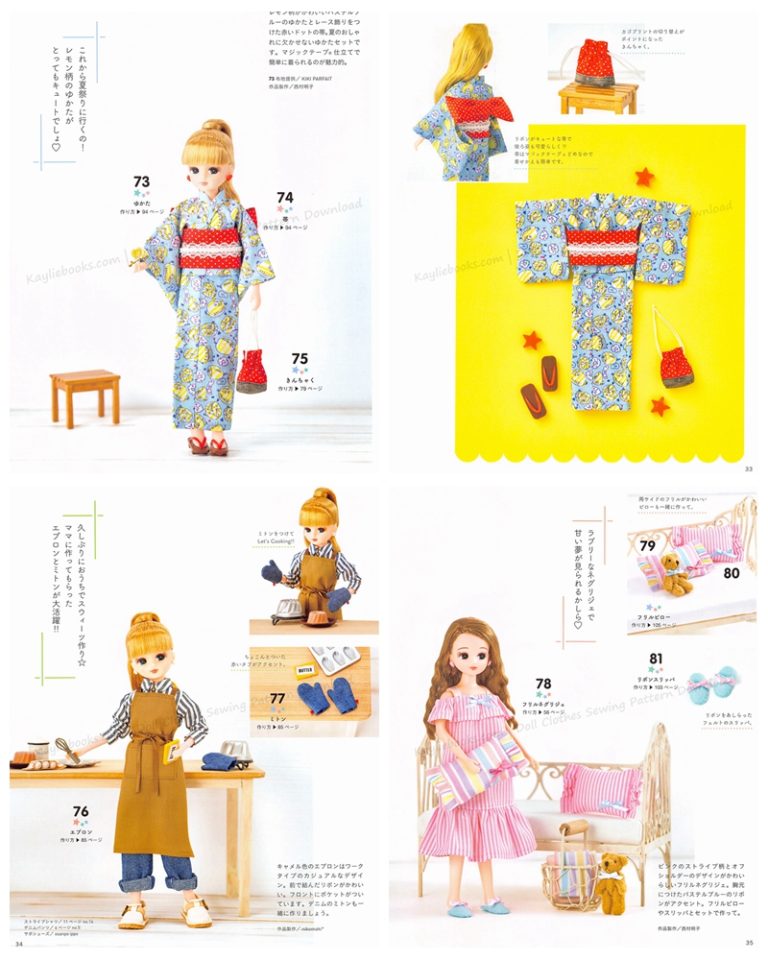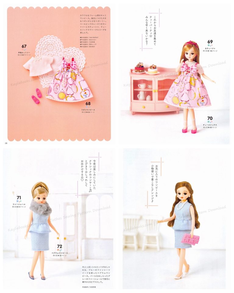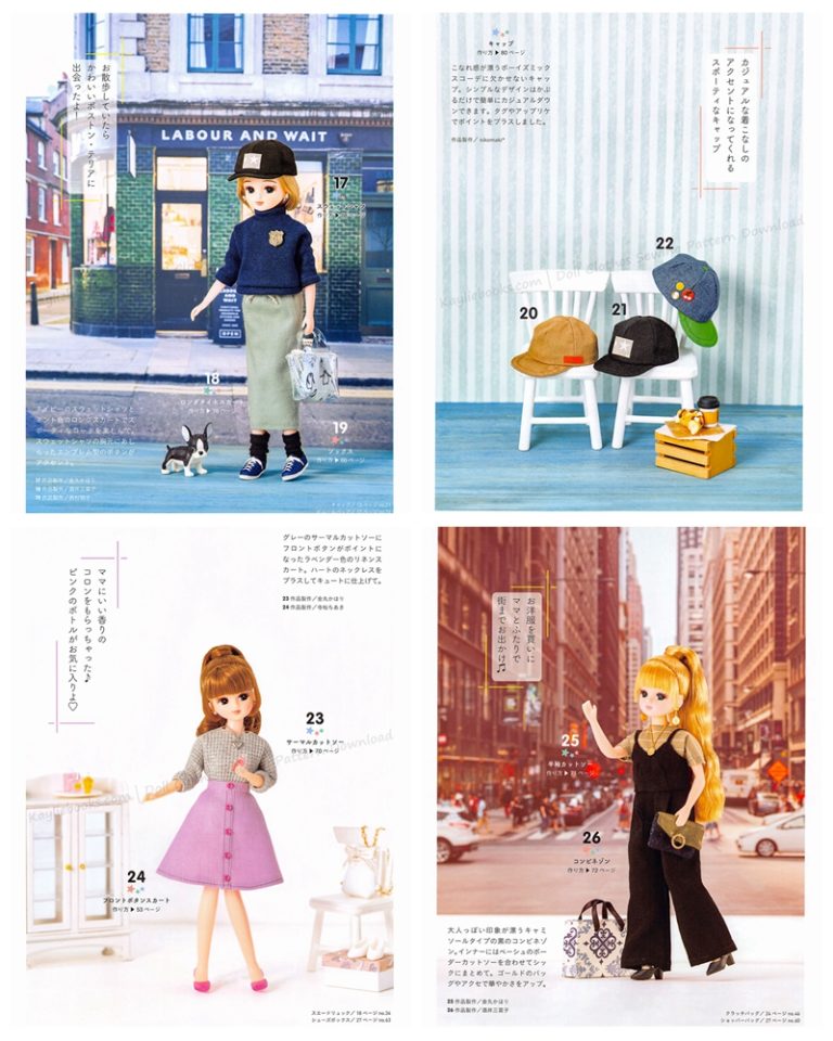 You will receive all 55 doll clothes sewing patterns for 22cm Licca Doll. Including outfit items such as sweater, dress, top.