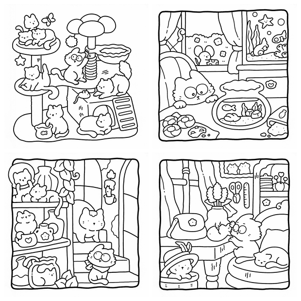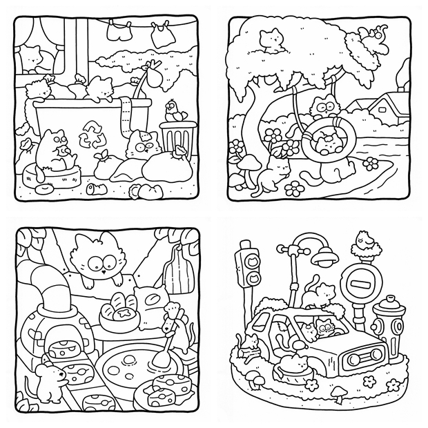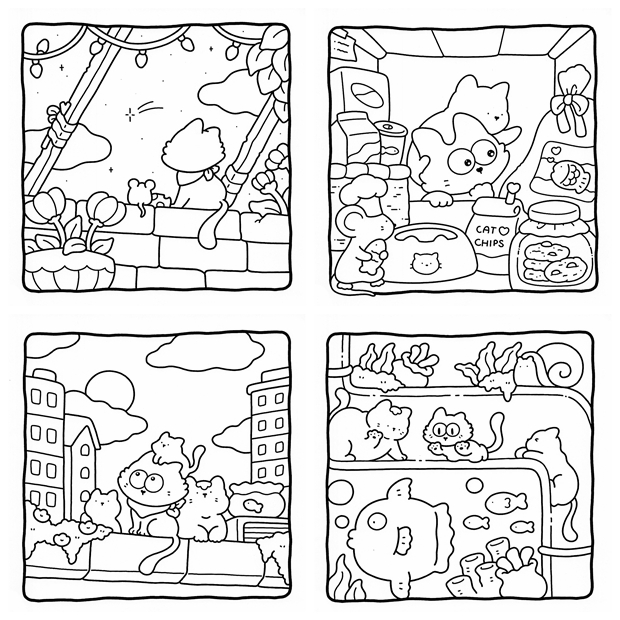 - The Little Cat – Playful cat illustrations paired with cozy home and everyday life scenes