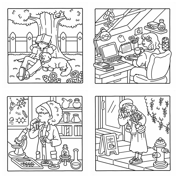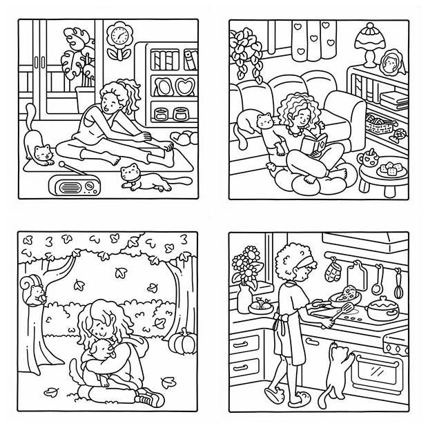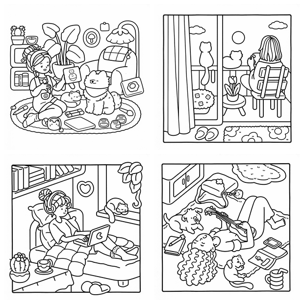 - Cozy Times – Calm daily scenes, creative corners, and peaceful indoor settings