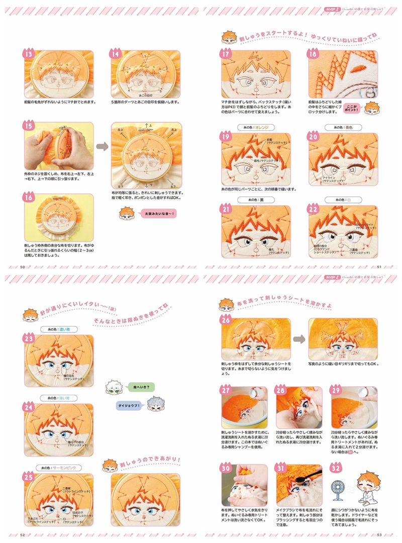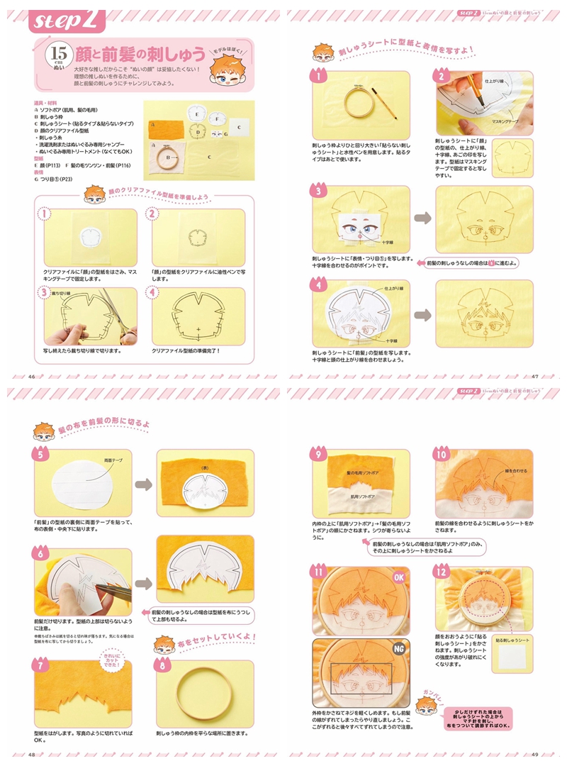 Created with beginners in mind, this Japanese craft book focuses on the most essential and expressive part of any fan doll: the face. You’ll learn exactly how to embroider eyes, mouth, and eyebrows, how to stitch on front hair (bangs), and how to keep the overall look balanced and full of personality. The tutorials are detailed yet approachable, with visual guides and clean, easy-to-follow instructions that walk you through every step.