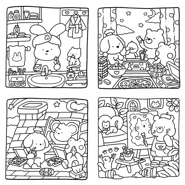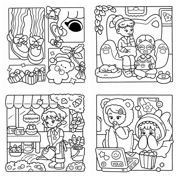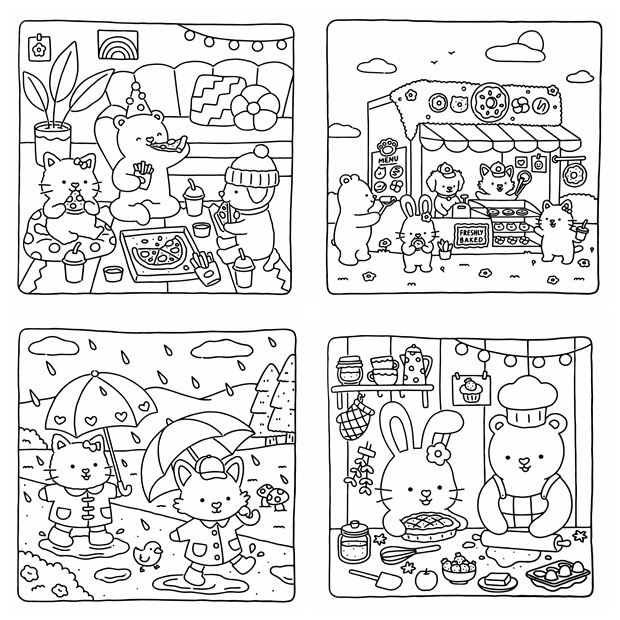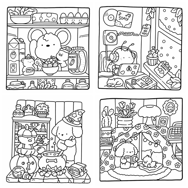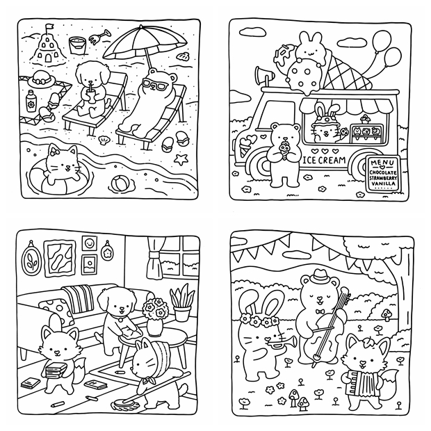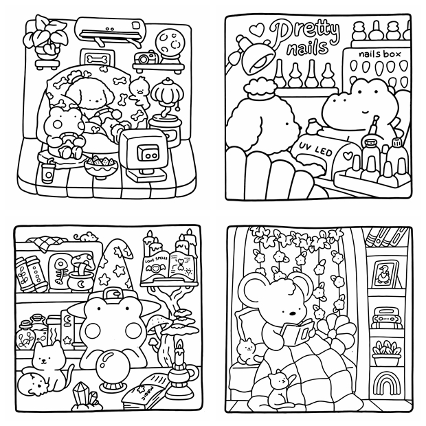 The Cozy Cuddles Coloring Book Collection is a beautiful kawaii coloring book bundle bringing together 4 super cute coloring books in one irresistible set — 165 pages of adorable animals, cozy scenes, kawaii characters, and charming everyday moments, all drawn in a bold, friendly style that’s easy and satisfying to color. Whether you reach for markers, colored pencils, or crayons, every page in this bundle delivers that warm, happy feeling only kawaii art can give. Perfect for kids, teens, and adults who love cute illustration styles — this is the ultimate cozy coloring collection to curl up with anytime.