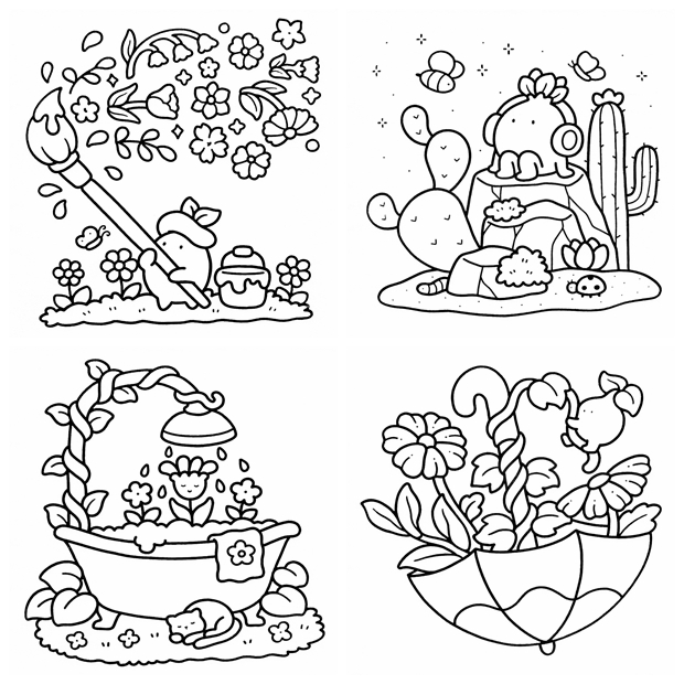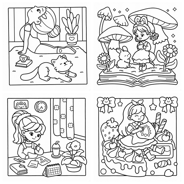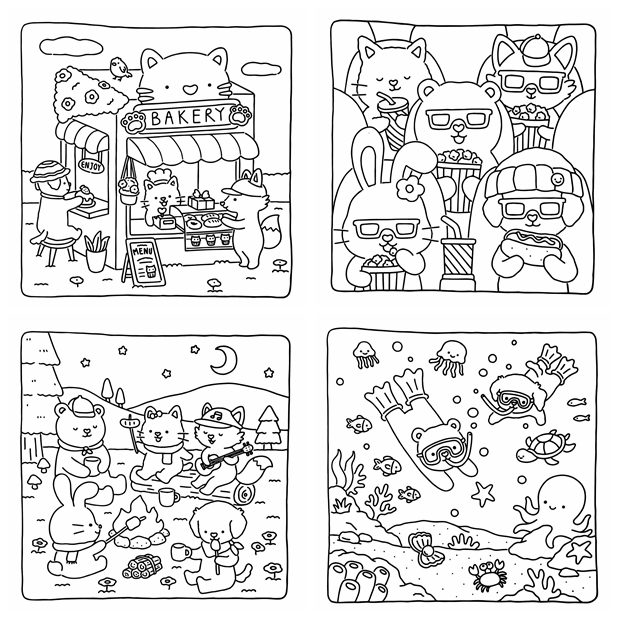 This kawaii coloring book bundle is designed to bring joy to colorists of all ages and skill levels: