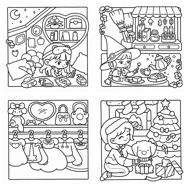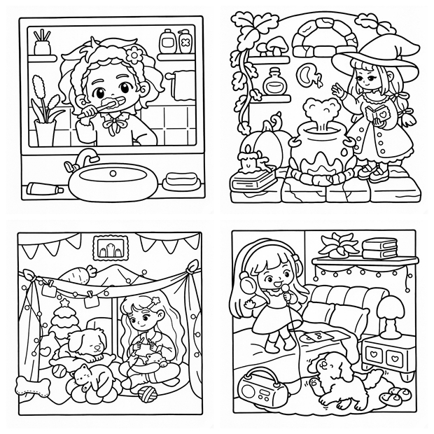 - 🏕️ Girl Spaces – Cute & Easy Coloring Book