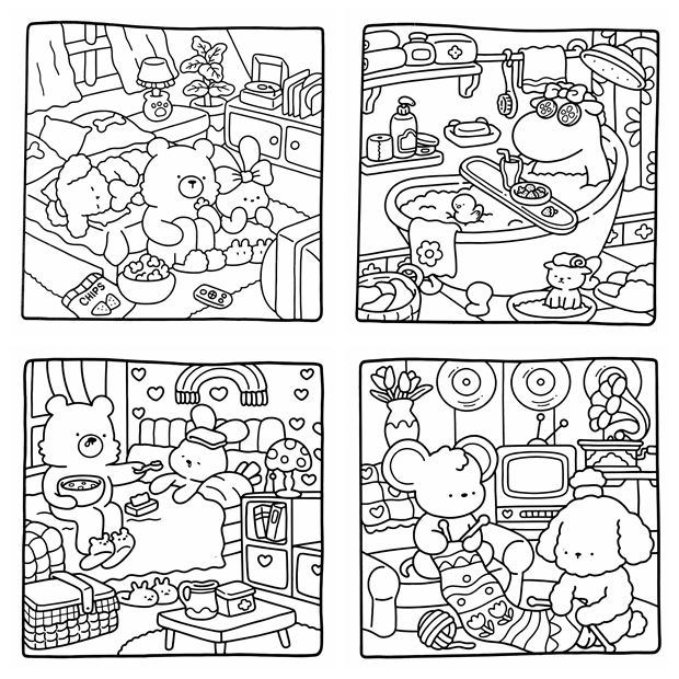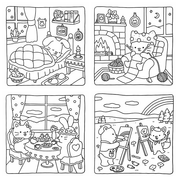 - 🐶 Cozy Friends – Cute & Comfy Coloring Book