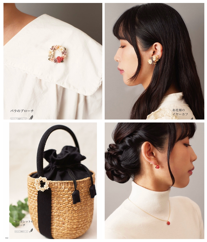 - Rose ear cuffs and flower field brooches