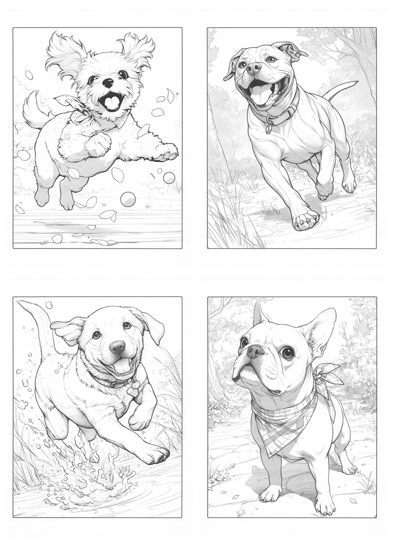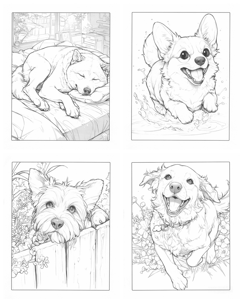 Inside this digital collection, you will find 45 high-quality illustrations featuring a wonderful variety of breeds and personalities. From energetic romps in the park to quiet nap times, every page offers a new heartwarming scene to bring to life. You can look forward to coloring: