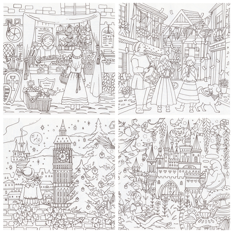 Every page has its own mood and narrative, making the book perfect for colorists who enjoy themed travel whimsical coloring pages.