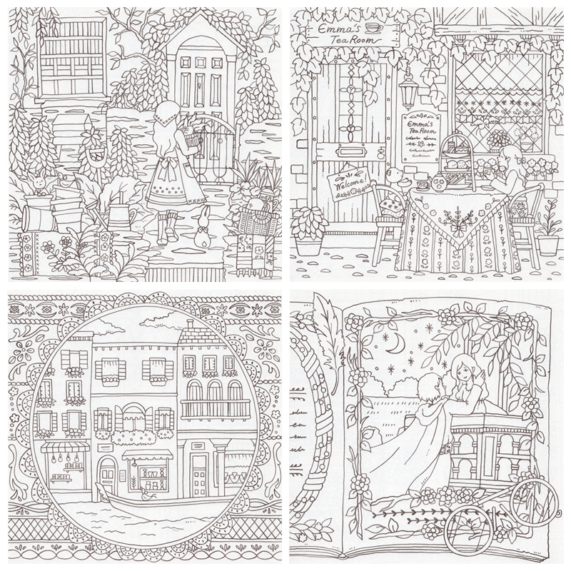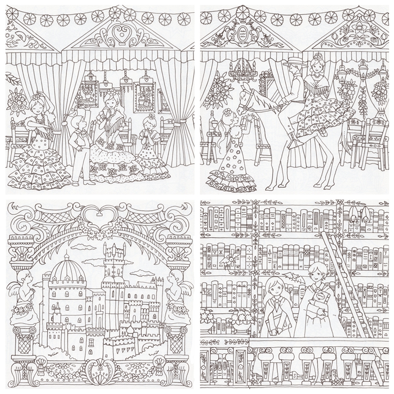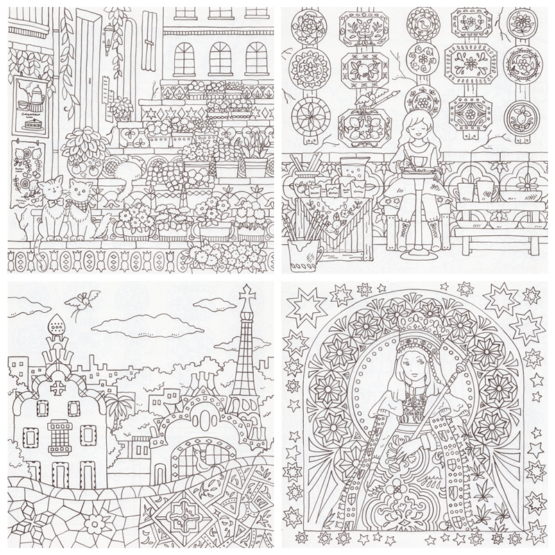 This Eriy printable coloring book captures memorable locations in a sweet, illustrative way: Venetian canals, palace halls, flower-covered balconies, Moroccan streets, coral reefs, lantern festivals, medieval towns, and grand European squares.
