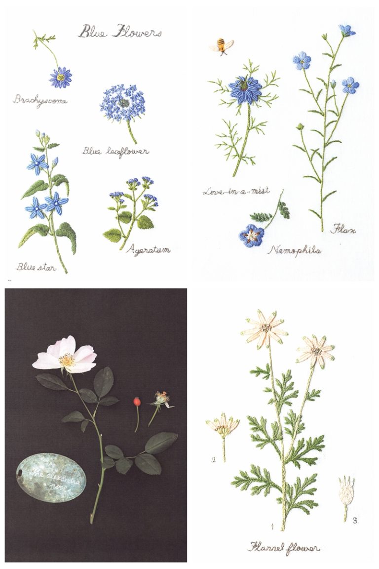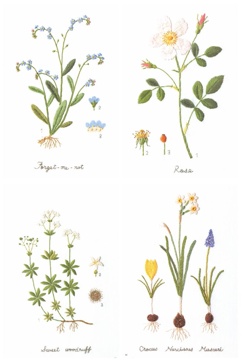 Within the pages of “Embroidered Garden Flowers,” you’ll find: