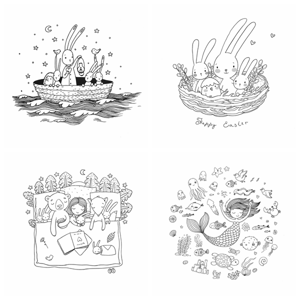 All coloring pages are packed in one PDF file, simply import and starting coloring!