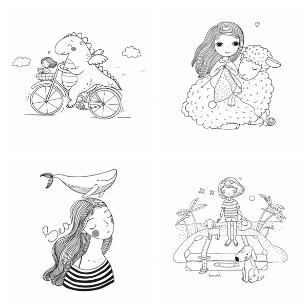 A Girl's Dream Coloring Page by Natasha Chetkova Preview Download Kayliebooks