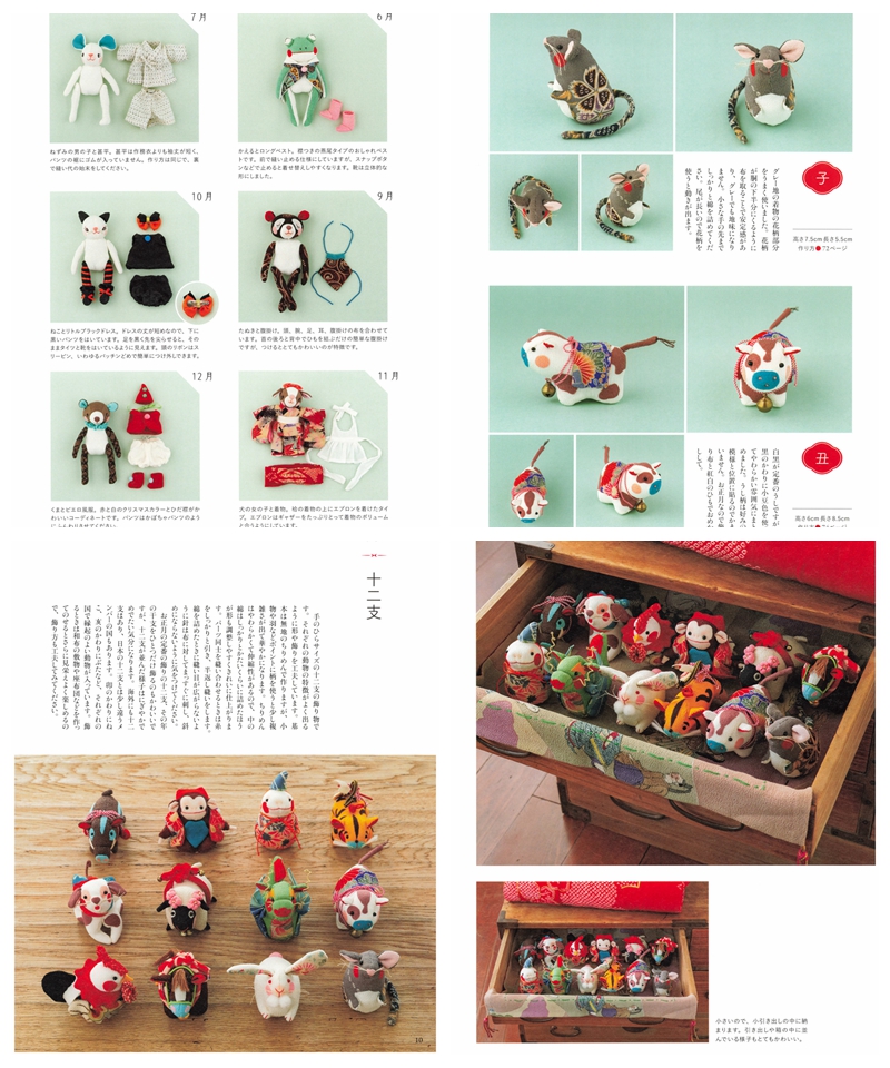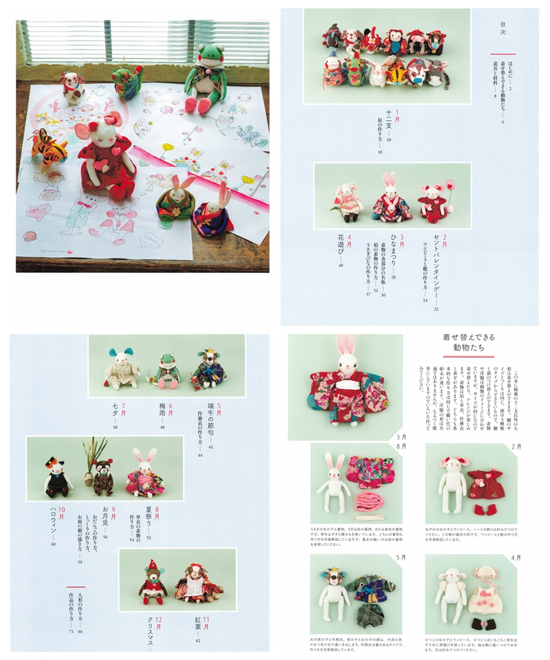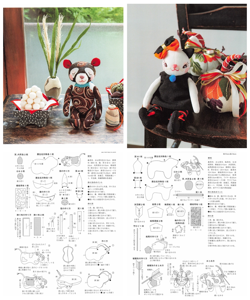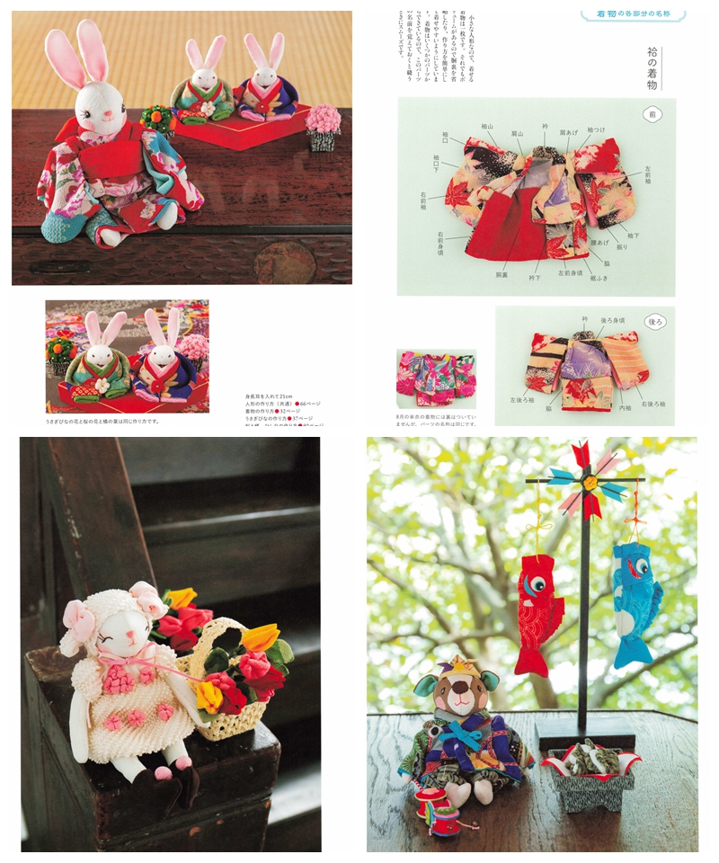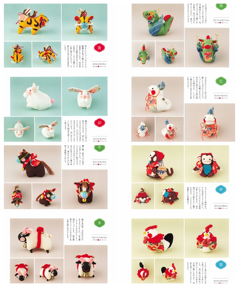 Discover the art of doll making with “Chirimen Animal Saijiki: Seasonal Decorations to Enjoy – Zodiac Animals and Dress-Up Fun” by Michiko Baba. This charming Japanese craft book offers a full year of creative inspiration through seasonal doll projects, all made using traditional chirimen (crepe) fabric. Whether you’re a beginner or experienced in sewing, this book is a treasure trove of ideas and sewing patterns for making your own lovable animal companions.