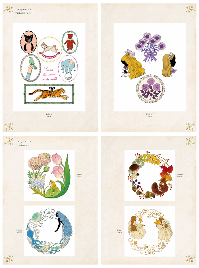 Six exclusive designs were created specifically for this book, including seasonal wreaths and animal samplers. All original artworks are also included, allowing the reader to appreciate the transformation from illustration to textile. This dual presentation reinforces the book’s role as both reference and archive.