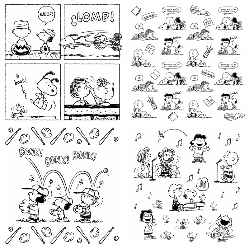 Character-focused pages featuring Charlie Brown, Sally, Lucy, Linus, Schroeder, Peppermint Patty, Marcie, and more