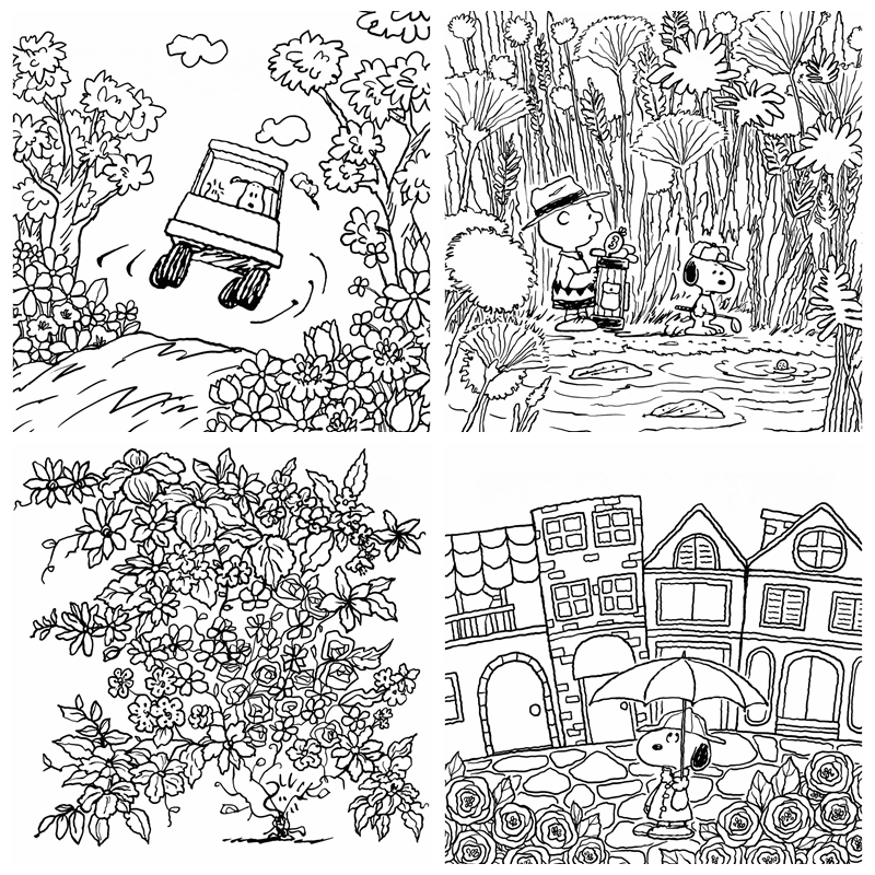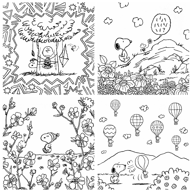The book also includes pages that feel like small “lessons,” showing a range of textures and moods—from soft pastel atmospheres to bold marker-style outlines—making it a fun resource for anyone who wants to improve their coloring technique while relaxing. Whether you are a PEANUTS fan or simply love feel-good coloring pages, this PDF brings you a gentle, nostalgic creative session whenever you need a break.