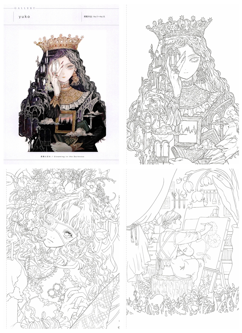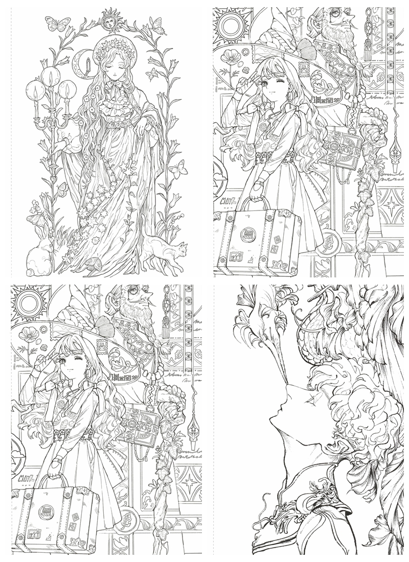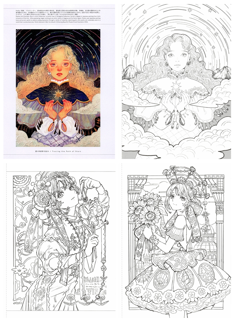 While this book does not include a dedicated tutorial section, the colored reference images provided at the start of each artist’s chapter serve as invaluable guides for color palette inspiration and shading direction — making it especially useful for intermediate to advanced colorists who enjoy working from visual examples. The line art ranges from moderately detailed to highly intricate, making it best suited for: