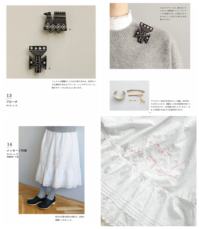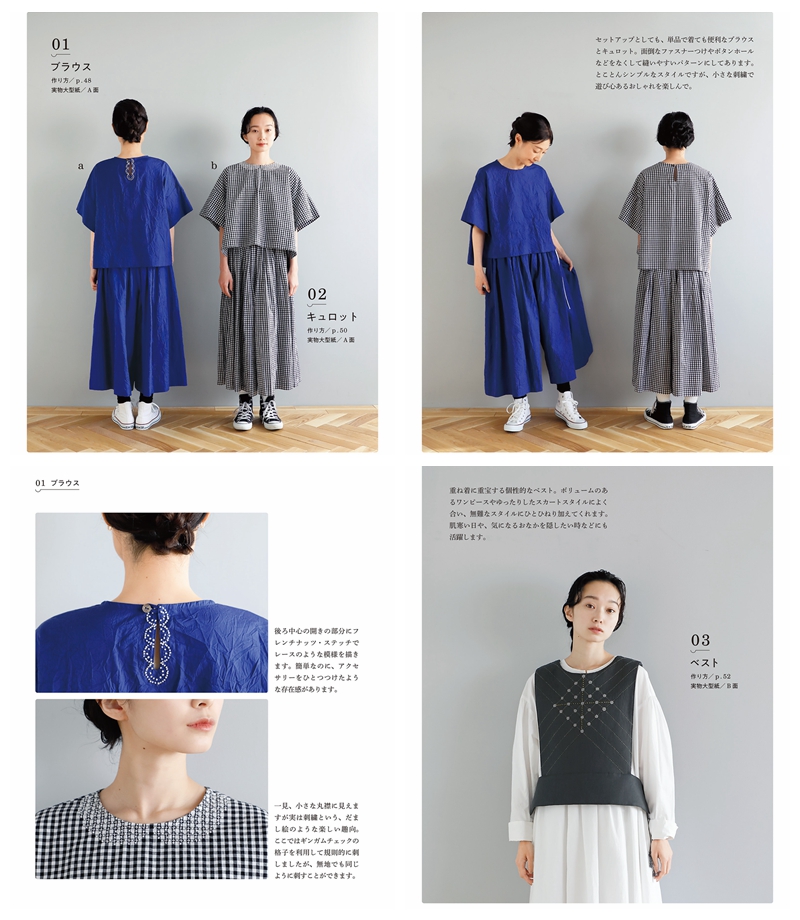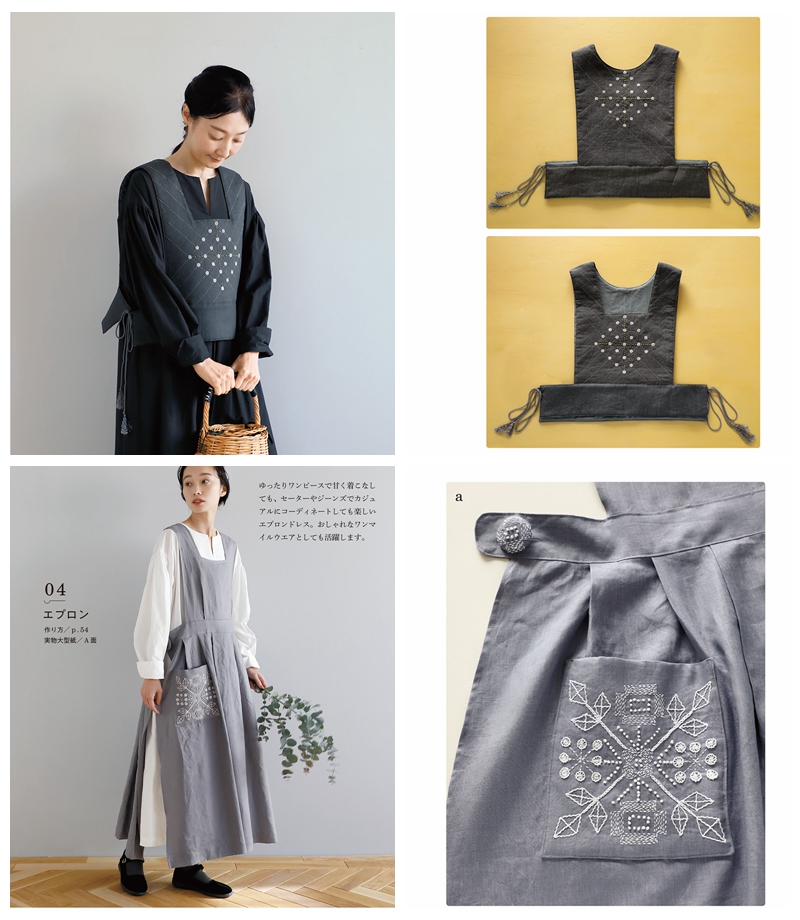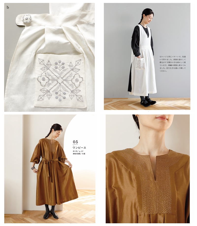 Unlike pattern collections that stop at motifs, this book shows how sashiko patterns come to life on fabric. Step by step, you’ll see how stitched designs are incorporated into blouses, skirts, aprons, tote bags, pouches, hair accessories, and brooches—creating pieces that feel both timeless and contemporary.