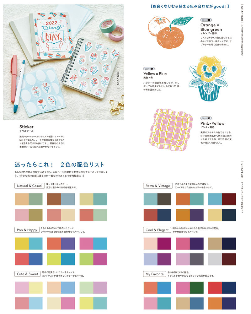 - 🌈 Curated two-color combination reference list (Natural & Casual, Pop & Happy, Cute & Sweet, Retro & Vintage, Cool & Elegant and more)