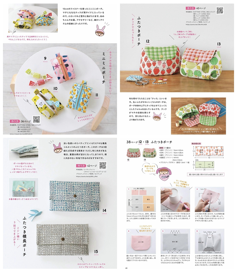 This sewing book PDF is designed to stand on its own, with detailed step-by-step photos explaining each process clearly. In addition, QR codes are included next to selected projects, allowing you to view related videos for visual clarification when needed. This makes it easier to understand tricky steps such as zipper insertion, bag shaping, or fabric handling—without replacing the written instructions.